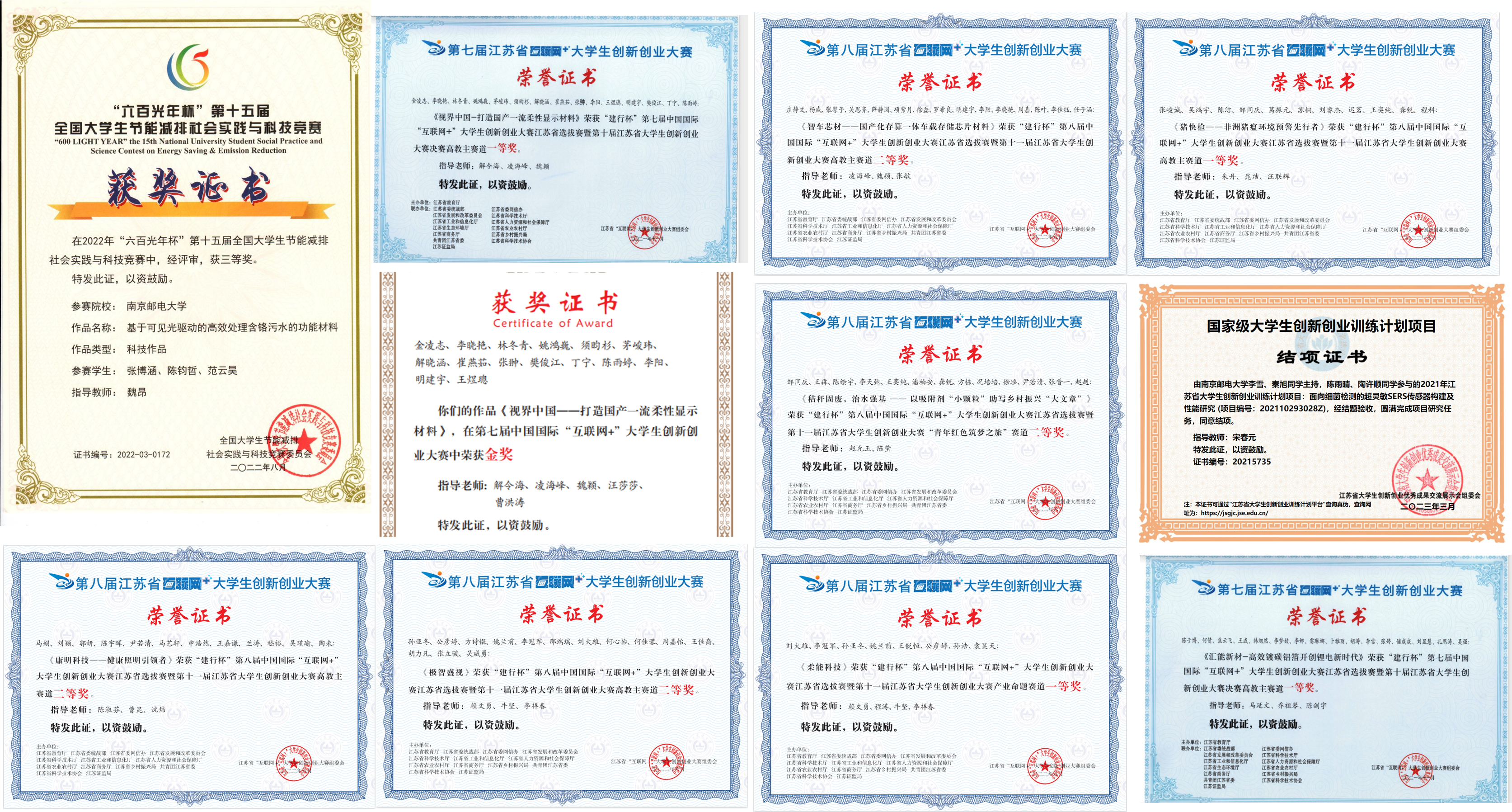 通过实验实践教学理念与体系创新、教学内容和教学手段的创新,取得了很好的实验实践教学成果和成效,近两年荣获全国“互联网+大赛”金奖4项,铜奖1项,省一等奖4项,二等奖4项,中国国际大学生创新大赛(2023)国赛金奖2项;近五年来,全国“挑战杯”竞赛获国奖6项,省级获奖4项,2022年“挑战杯”江苏省大学生创业计划竞赛获金奖1项,银奖1项,国赛获银奖2项,助力学校首次捧得“挑战杯”创业计划竞赛国赛“优胜杯”,2023年在第十八届“挑战杯”国赛上取得新突破,麻豆视频 共获得全国一等奖1项、全国三等奖1项;获全国大学生节能减排大赛全国一等奖1项,二等奖1项,三等奖4项。近五年承担了STITIP国家级项目16项,省级项目17项。