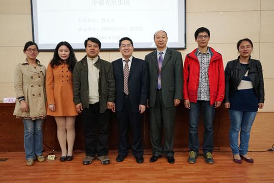 臧文超副总裁介绍了在许多能源日益枯竭的今天,开发太阳能发展光伏行业的意义、光伏发电的基本概念、近年来世界光伏的发展状况和未来极具潜力的发展前景、中国光伏发展现状和发展趋势等。他重点介绍了光伏制造工艺,具体介绍了工业硅提纯方法、晶体生产及切片工艺流程、电池制造工艺流程、组件制造工艺流程等环节。通过直观的流程图和产品图片以及现场板书,详细地解析了每个工艺流程的具体操作步骤,例如,组件制造工艺环节流程就分为电池分选、压焊、串焊、排版、EL检测、层压、EL检测、修边、边框打胶、装边框、装接线盒、接线盒灌胶、固化、表面清洗、IV测试、EL检测、高压测试、外观检测、成品包装等近二十个工序。臧文超副总裁对每个工艺环节流程中每一个工序的具体分析,使同学们仿佛亲身经历了光伏制造工艺的整个工作过程。他还介绍了太阳能光伏行业在各个方向的综合运用,以及中盛光电集团的行业地位、服务业务、发展目标等。近两个小时的精彩讲座不时响起同学们的阵阵掌声。