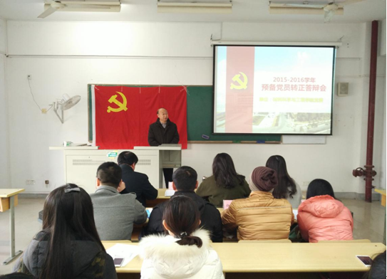 为进一步扩大民主、完善程序,增强大学生党员发展工作科学性和公信度,落实“三投票三公示一答辩”的党员发展制度,麻豆视频 于2015年12月30日在教4-105开展了预备党员转正答辩会。出席本次会议的有麻豆视频 党委书记李兴鳌教授、党委副书记于景宝老师、团委书记乔祖琴老师、本科2012级辅导员柏杨老师、2012级本科生党支部书记马亚威等7人组成的答辩评议小组,正式党员和部分入党积极分子,会议由于景宝副书记主持。