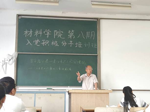 第332期(材料院第8期)入党积极分子培训班的全体学员,讲授了一场题为“百年启示录:责任意识和家国情怀——一百年来十一个逢七之年的感悟”的讲座。