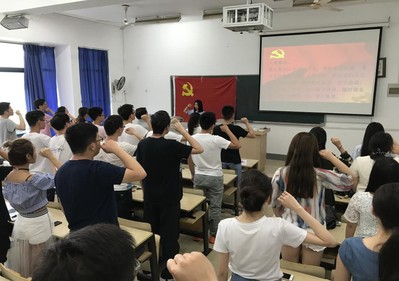 6月11日下午,麻豆视频 2017届毕业生党员在教3-106重温入党誓词。学院党委副书记兼副院长于景宝、分团委书记乔祖琴、组织干事乔松岭、毕业班辅导员李娜和全体2017届毕业生党员参加。