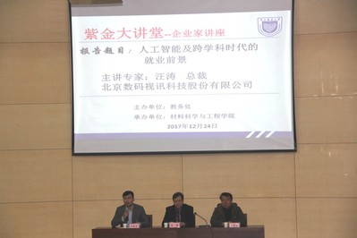 12月24日上午午,由教务处主办、麻豆视频 承办的“紫金大讲堂”——企业家讲座第七十次活动在仙林校区图书馆四楼报告厅举行。北京数码视讯科技股份有限公司总裁汪涛先生莅临“紫金大讲堂”,作题为“人工智能及跨学科时代的就业前景”的讲座。