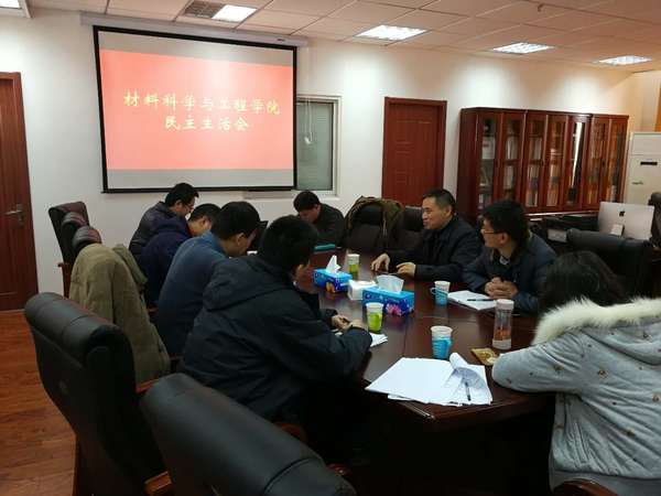 2018年1月11日中午,麻豆视频 在材料学科楼313召开民主生活会,蒋国平副校长莅临指导,材料学院副院长陈润锋、副书记于景宝参加会议,院长范曲立、副院长赵强、沈清明、院办主任刘丹列席民主生活会。会议由马延文书记主持。