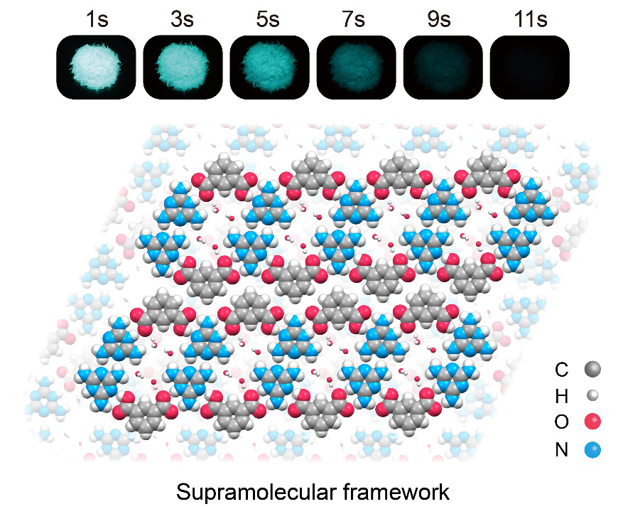 近几年,通过三线态电子辐射跃迁产生的有机磷光凭借其长发光寿命、高量子产率和大斯托克斯位移,在光电和生物领域获得了广泛关注。目前,实现有机磷光主要有两个思路,一个是通过引入芳香羰基、杂原子或重原子增加自旋轨道耦合,另一个是通过晶体工程、主客体掺杂、构建金属有机框架等方法抑制三线态激子的非辐射跃迁。人们基于这两种理念在延长磷光材料的发光寿命或提高其发光效率方面取得了一定的进展和突破。然而到目前为止,由于较弱的自旋轨道耦合和较快的非辐射衰减,实现兼具长寿命和高效率发光特性的长余辉材料仍然存在诸多挑战。