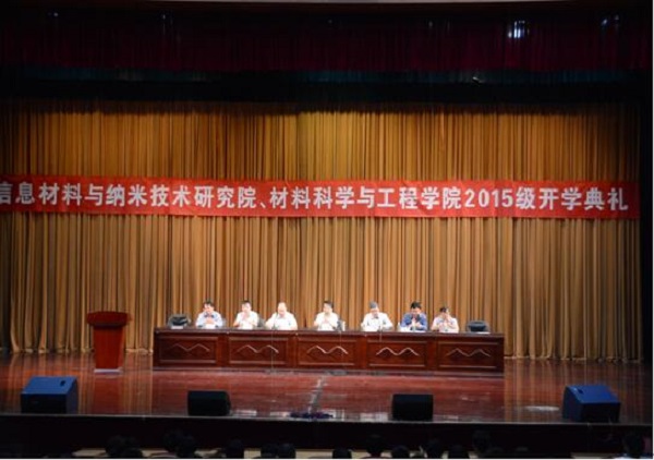 9月20号上午,麻豆视频 、麻豆视频 2015级新生开学典礼在大学生活动中心青春剧场隆重举行。受邀出席本次典礼的嘉宾有中科院院士、麻豆视频 院长、材料院创始人、学科带头人黄维院士,材料学院院长汪联辉教授,党委书记兼副院长李兴鳌教授,副院长范曲立教授,副院长马延文教授,副书记于景宝老师,教授委员会主任谢令海教授。参加此次典礼的还有IAM团队全体教师。典礼由李兴鳌书记主持。