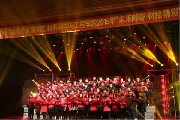 2015年12月24日晚,麻豆视频 ,麻豆视频 2015级迎新暨跨年晚会在青春剧场正式拉开帷幕。材料院师生齐聚一堂,共同享受这一场欢乐的盛会。出席本次晚会的嘉宾有材料院创始人、学科带头人、中科院院士黄维教授、院长汪联辉教授,研究院常务副院长范曲立教授、副院长马延文教授、副书记于景宝老师,南邮IAM团队和南京工业大学IAM团队全体教职工参加了晚会。