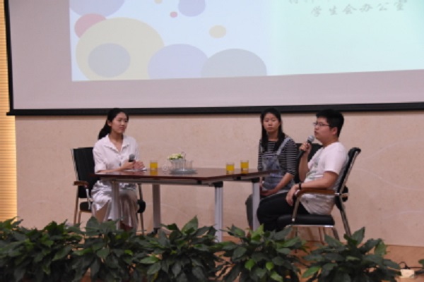 接下来采访的王天雨学长与朱绮学姐在分享时更多地注重了细节,他们具体讲了出国的流程、学校的选择、雅思等,尽管在某些问题上有不同的看法,但是两位对于选择出国都有一致的心得:“出国不仅仅只是镀了一层金,重要的是能选择自己喜欢的学校和专业,学到对自己有用的知识”。学长学姐的分享让同学们改变了对出国一贯的认知,为想要出国的同学提供了帮助。采访结束后,还有部分热情高涨的同学留下,和学长学姐进行交流。本次活动的成功举办,为大家搭建了交流的桥梁,达成了预期目标。
