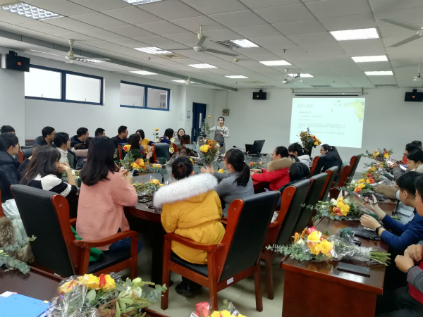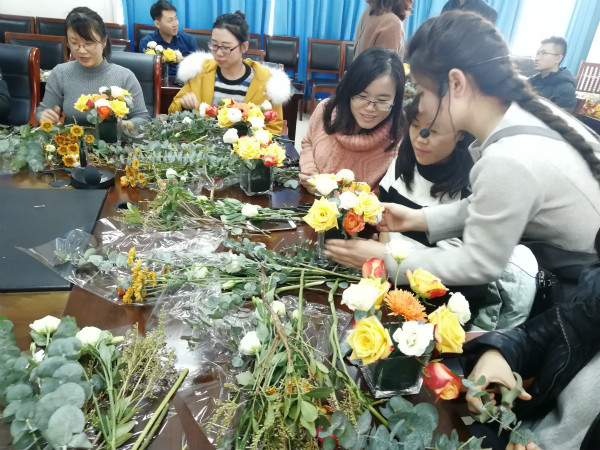 为陶冶教师情操,丰富麻豆视频 教职工的业余生活,12月17日中午12:00,麻豆视频 分工会开展了“材花云集 修身益心”插花活动,麻豆视频 百余位教师参加了此次活动。此次活动邀请了有着丰富经验的花艺老师现场介绍鲜花的保养与摆放等常识,详细介绍了插花花材的种类、用具,并进行现场插花操作,让大家在这个冬季体会到浓浓暖意。