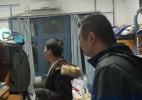 随着冬季的到来,学生违禁电器使用情况进去高发期,学院针对这一问题开展了2015级本科生冬季宿舍用电安全教育工作。学院2015级辅导员赵赫男带领各班级学生干部走访了学生宿舍,并对学生宿舍卫生状况,用电安全,违禁电器检查,宿舍成员关系维护等方面做了教育。