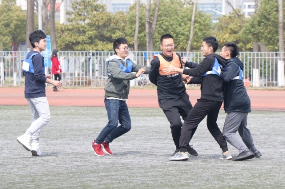 所有参与人员在南操集合完毕后,由班级负责人宣布撕名牌游戏的规则。接着,第一轮撕名牌游戏正式开始。本次游戏共分为红、蓝、粉、绿、黄五个小队。游戏开始后,红队和粉队结盟,蓝队和绿队结盟,两个联盟在场上相互试探,你来我往、好不热闹,过了一会儿,粉红联盟抓住了时机,撕掉了蓝队队长的名牌,淘汰掉蓝队,又通过围堵淘汰掉了绿队,顺利淘汰了蓝绿联盟。红队和粉队开始角逐最后的赢家。最后,粉队成功撕下了红队队长的名牌,取得了第一轮游戏的成功。中场休息过后,五个小队在场上发动了一次又一次的混战,斗智又斗勇,整个赛场上充满了欢笑声。最终,经过激烈的角逐,蓝队取得了第二轮游戏的胜利。