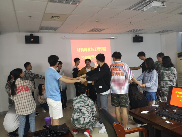 为了让心理委员更好的运用心理学的方法为班级学生服务,保障学校心理健康教育四级网络的有效实施。2019年5月10日中午12点,麻豆视频 开展了第一次“心理学与心理健康”培训。2018级全体班委在材料院辅导员陈骏老师、校心理实习研究生尹耀平同学的带领下,进行了一系列与心理有关的培训活动。