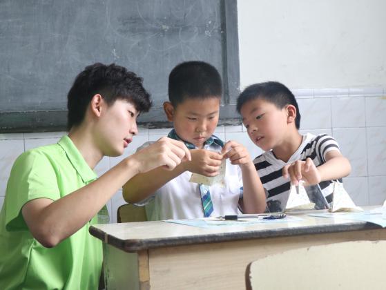 实践团的同学们为孩子们带来了一场关于“垃圾分类”的环保讲座。同学们向孩子送上精心设计的环保单页,在与孩子们的互动中教会孩子区分“干垃圾”、“湿垃圾”、“有害垃圾”和“可回收垃圾”,并结合专业知识特点带领孩子开展趣味化学实验。实践团的成员们分成若干小组,走下讲台,协助孩子共同完成实验。