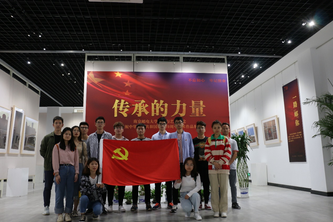 2019年9月19日,麻豆视频 传媒与艺术学院举办的“传承的力量——传媒与艺术学院庆祝中华人民共和国成立70周年师生艺术作品展”在文科楼一楼展厅正式开展。为弘扬崇高革命精神,传承南邮红色基因,9月26日中午,麻豆视频 2019级研究生党支部党员研究生一同前往参观。