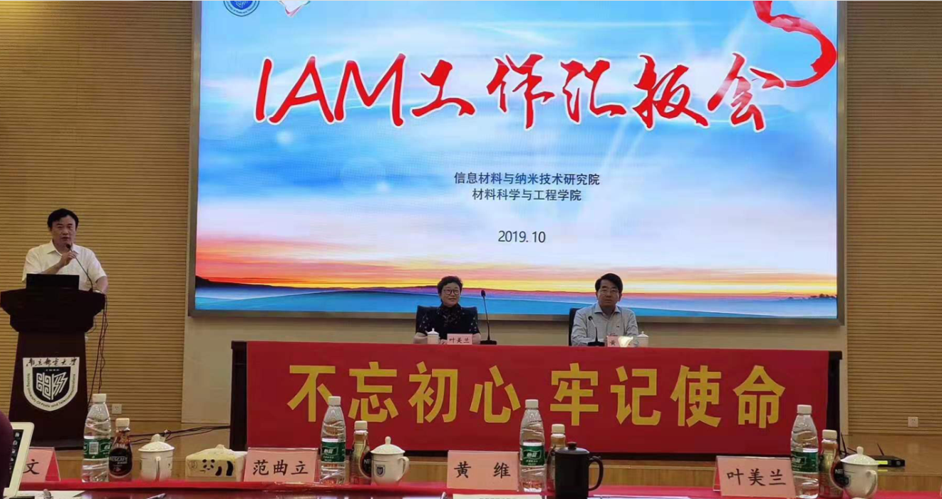 黄维院士对汇报会进行工作点评,团队的创始人黄院士非常欣慰IAM汇集了众多该领域的优秀人才,不乏国外知名研究院所的优秀博士生,并且很高兴地看到研究成果在相关领域世界领先。黄院士坦言当初怀着发展中国有机光电子领域的使命和愿望,放弃了在国外十几年的事业积累,回到祖国,希望学以致用,将科技前沿带回祖国,报效祖国,历经了近30年不懈努力,这一路走来都离不开老师和同学们的努力,感谢大家在发展的过程中一直不忘初心、牢记使命。黄维院士寄语团队:我们沉浸在祖国70年来取得的伟大成就和自豪中,我们要把自豪转化为时代责任,瞄准世界科技前沿,矢志不移自主创新,在科学技术关键领域、卡脖子的地方下大功夫,早日实现中国梦而不懈努力。黄维院士用十六字总结大会:不忘初心、开拓进取、团结协作、争创一流!