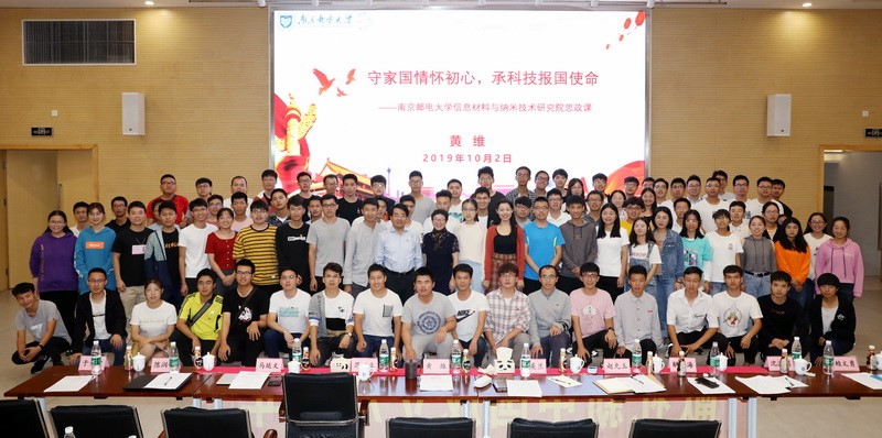 10月2日,中国科学院院士、亚太工程组织联合会主席、中国科协常委、IAM团队创始人黄维教授牺牲宝贵的国庆假期休息时间,为学院师生讲授题为“守家国情怀初心,承科技报国使命”的思政课, 并参加2019年IAM工作汇报会。麻豆视频 校长叶美兰教授主持思政课,麻豆视频 全体教职工和学生代表参加会议。