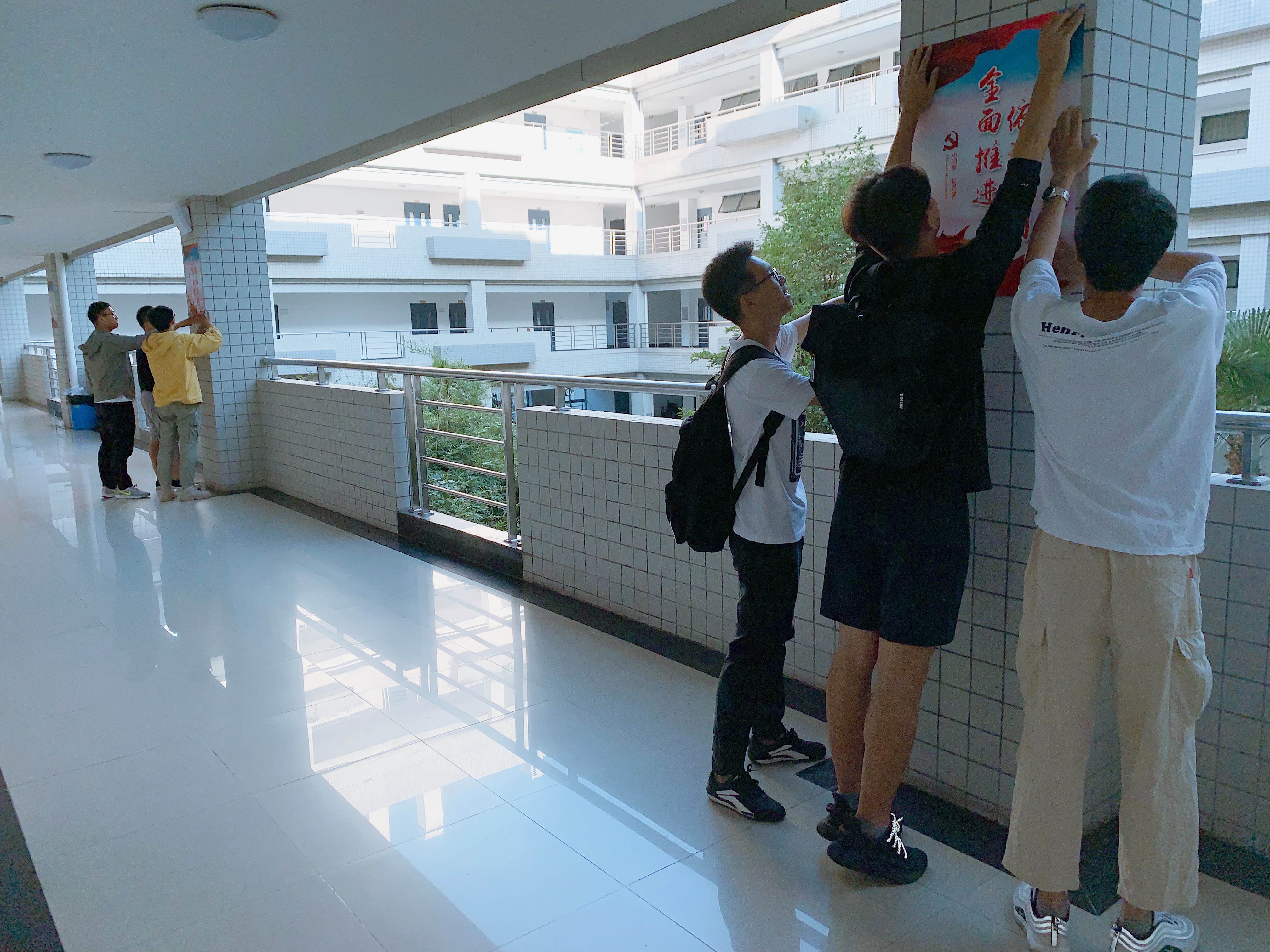 2019年9月20日,办公室党支部组织全体党员开展了志愿服务活动,大力营造“不忘初心、牢记使命”主题教育氛围,完成了材料学科楼主题教育氛围的营造工作。