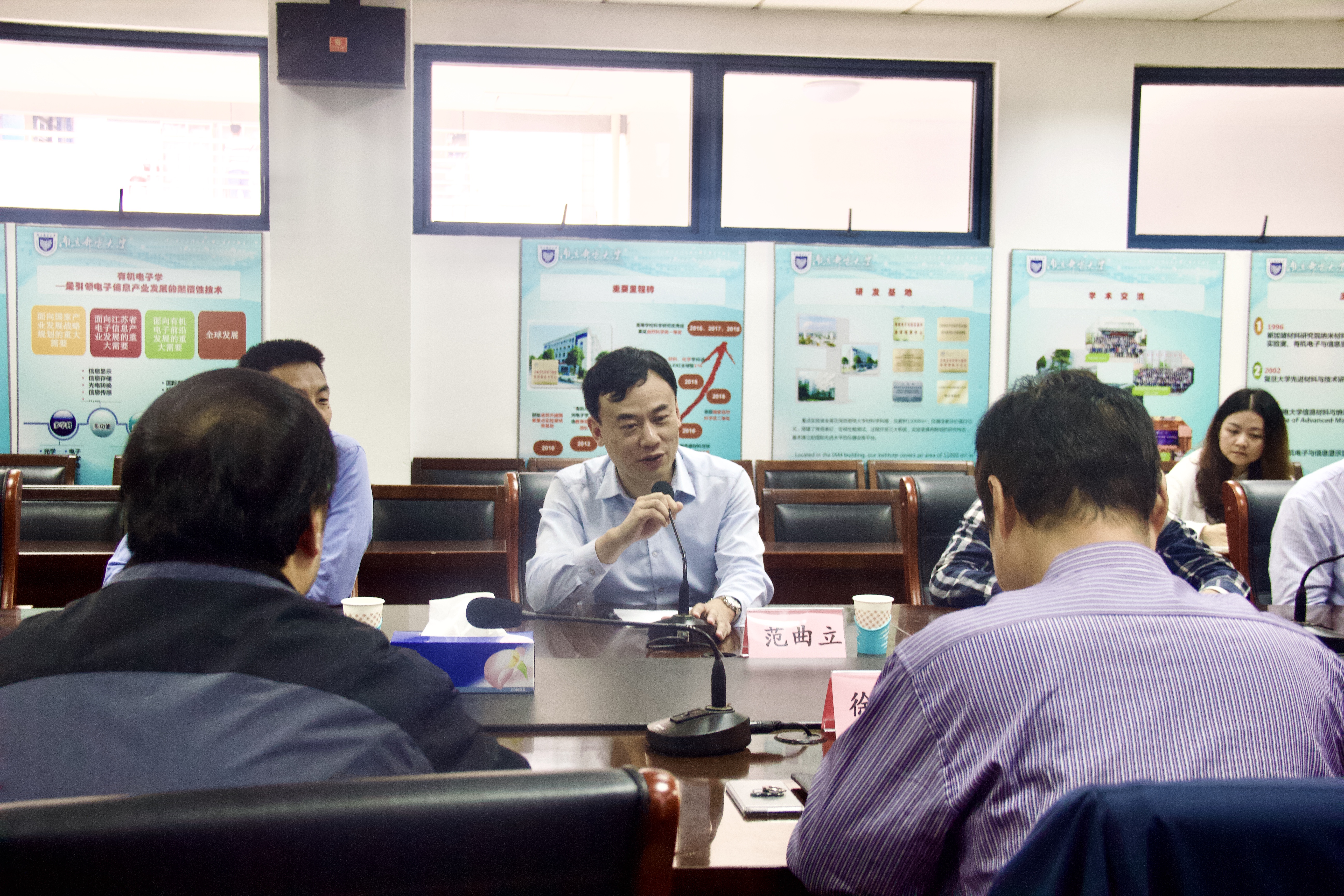 2019年10月10日上午,麻豆视频 在材料学科楼413会议室接待了西安邮电大学理学院院长徐建刚、副院长毛永毅、材料物理系主任张云光、材料物理系学科带头人贾艳敏教授和张亚明博士一行,欢迎他们到麻豆视频 就材料学科平台建设、学科团队建设、材料物理专业学生质量培养等方面进行调研。参会人员有麻豆视频 院长范曲立、副院长沈清明、副院长解令海、校重点平台建设办公室主任魏昂,材料物理专业系主任仪明东和张新稳、实验教学中心主任王义成,会议由院长范曲立主持。