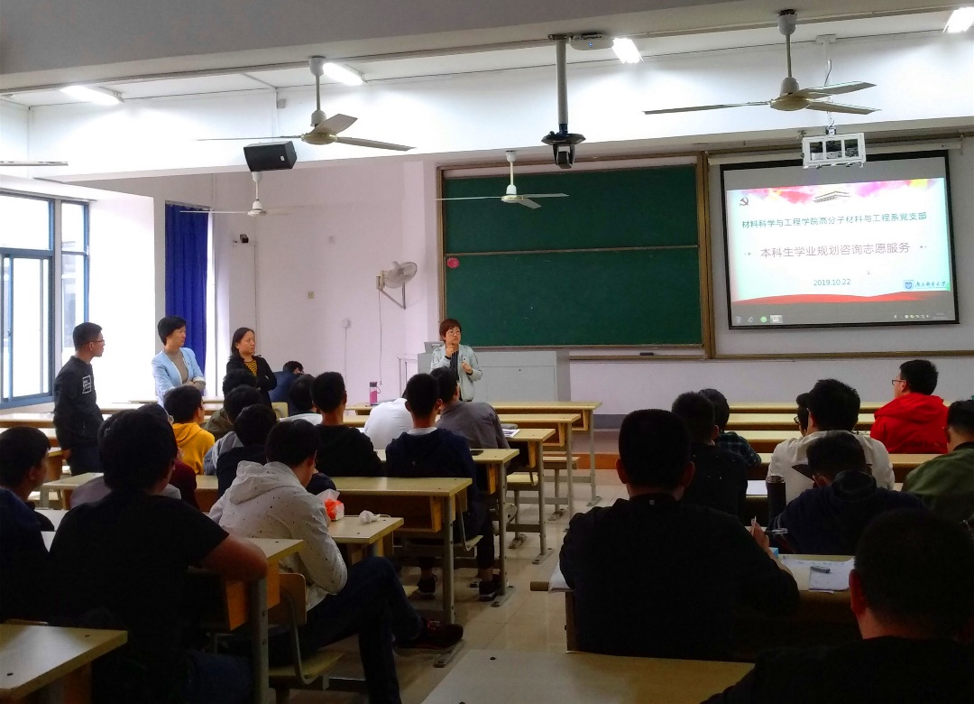 为深入推进“不忘初心、牢记使命”主题教育,激励全体党员同志把主题教育的成果转化为促进各项工作发展的实际成效,高分子材料与工程系教师党支部在10月22日下午开展了学业规划咨询志愿服务,与高分子系本科二年级学生就学业学习、未来发展和人生规划等方面展开交流和指导。