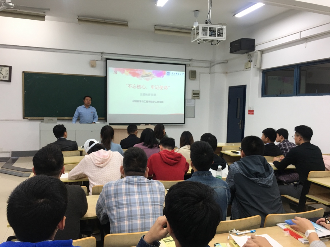 2019年10月23日下午,麻豆视频 学工党支部于教3-103教室组织了 “不忘初心、牢记使命”主题党课,由学院于景宝副书记讲授。辅导员杨书丹、赵赫男、陈骏与本科学生党员一起参加党课学习。