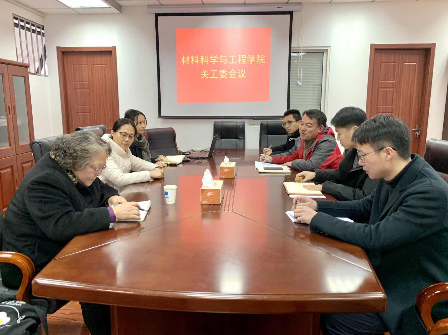 谌进老师首先介绍了学校关工委的相关情况,随后对学院关工委的工作提出指导和意见。谌进老师从青年教师的培养,青年学生培养的思路方法为切入点,与参会老师展开深入讨论,指出关工委工作要结合学院科研优势,充分利用教育教学资源,做出具有材料学院特色的关工委工作。学院关工委副主任、党委副书记于景宝回顾并总结了一年来学院关工委工作。