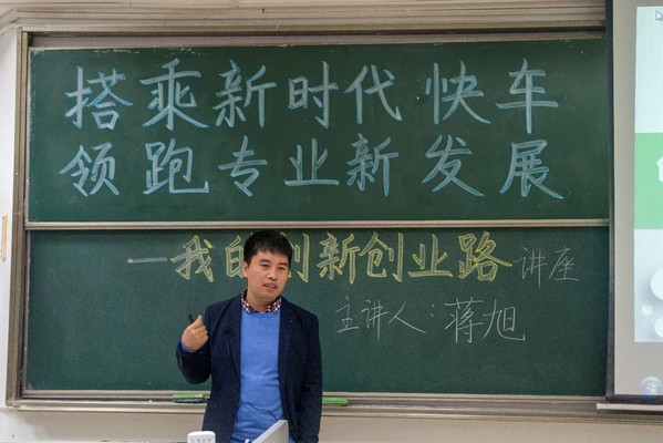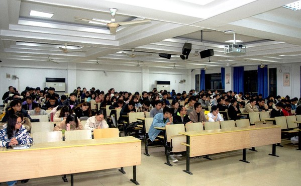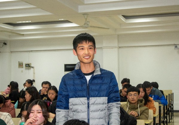 在互动环节中,同学们围绕着就业、升学以及青春的烦恼方面的问题向蒋旭先生提问,蒋旭先生用自身的经历一一的解答了大家的疑惑。在互动环节的最后,张广维副教授就如何面对创业的成功与失败的问题向蒋旭先生提问,蒋旭先生以深入浅出的分析和幽默风趣的语言赢得了在场学生老师们的阵阵掌声。