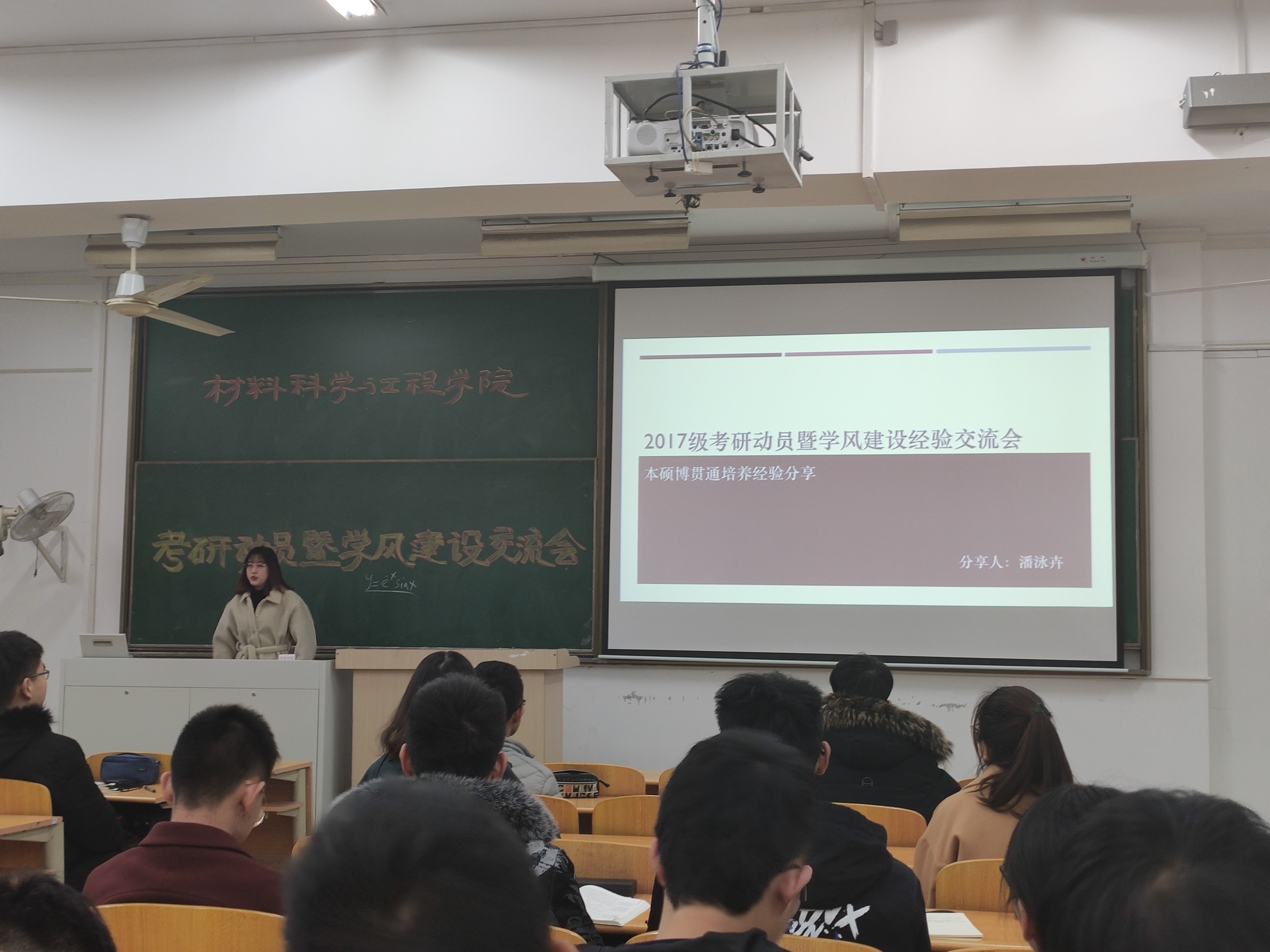 然后,优秀学生代表依次分享各自经历。2016级本科生韩丽同学向大家分享自己的保研经历,分别就如何合理规划、如何协调大学生活提出了中肯的建议,强调有付出才会有回报,珍惜大学四年的美好时光;2016级本科生潘泳卉同学向大家介绍了自己丰富的大学生活,并且分享自己是如何选择学院的本硕博贯通培养计划的,并希望大家能脚踏实地,认真考虑自己的将来,早做打算。