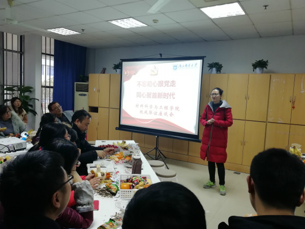 赵允玉书记在联谊会上致辞,代表学院党委向大家致以新年的祝福,回顾了学院在过去一年中取得的一些成就,学院将继续在制度建设、文化建设方面进行完善,为党内外人士搭建干事创业的平台和条件,完善统战工作制度,汇聚统战成员的智慧,发挥材料学院统战成员的科技、人才、智力优势,希望新的一年,各位同志能够主动作为,继续以饱满的工作热情和坚定的信念,凝心聚力、团结协助,为学院的发展贡献力量。