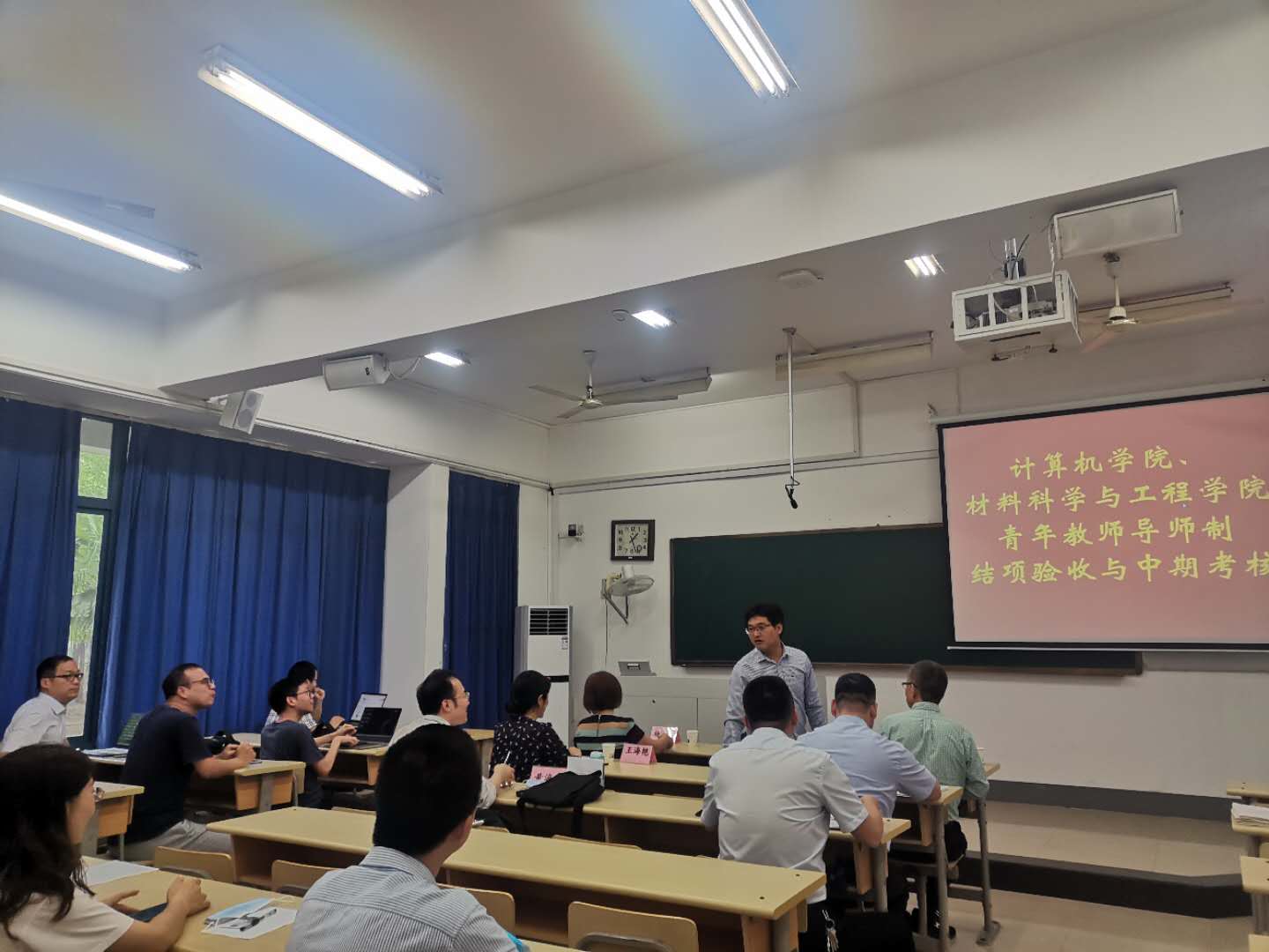 与计算机学院在教4-104教室共同组织了新进青年教师导师制结项验收与中期检查工作。学院邀请到南京大学化学化工学院侯文华教授、教学质量监控与评估中心杨立军主任、教务处教师发展中心李永涛主任、人事处骆公志副处长、国际合作交流处王海燕副处长、计算机学院黄海平副院长及麻豆视频