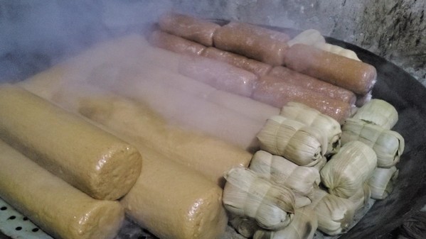 6. 上锅蒸粑粑:用蒸的方式,在上完浆,风干后的粑粑胚上抹上菜油。上锅蒸12小时左右即可出锅。