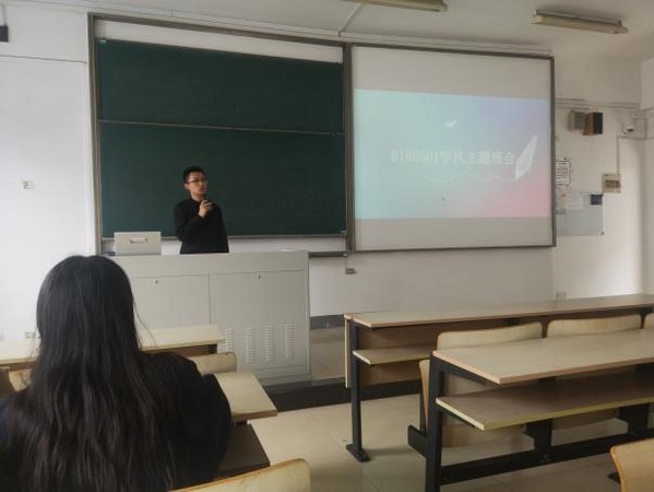 为了总结上学期的学习情况并为大三的学习目标进行规划,麻豆视频 B180501班于9月22日在教2-304开展了B180501班学风建设主题班会,班会由班长王子彤主持,辅导员陈骏老师和全体同学参会。