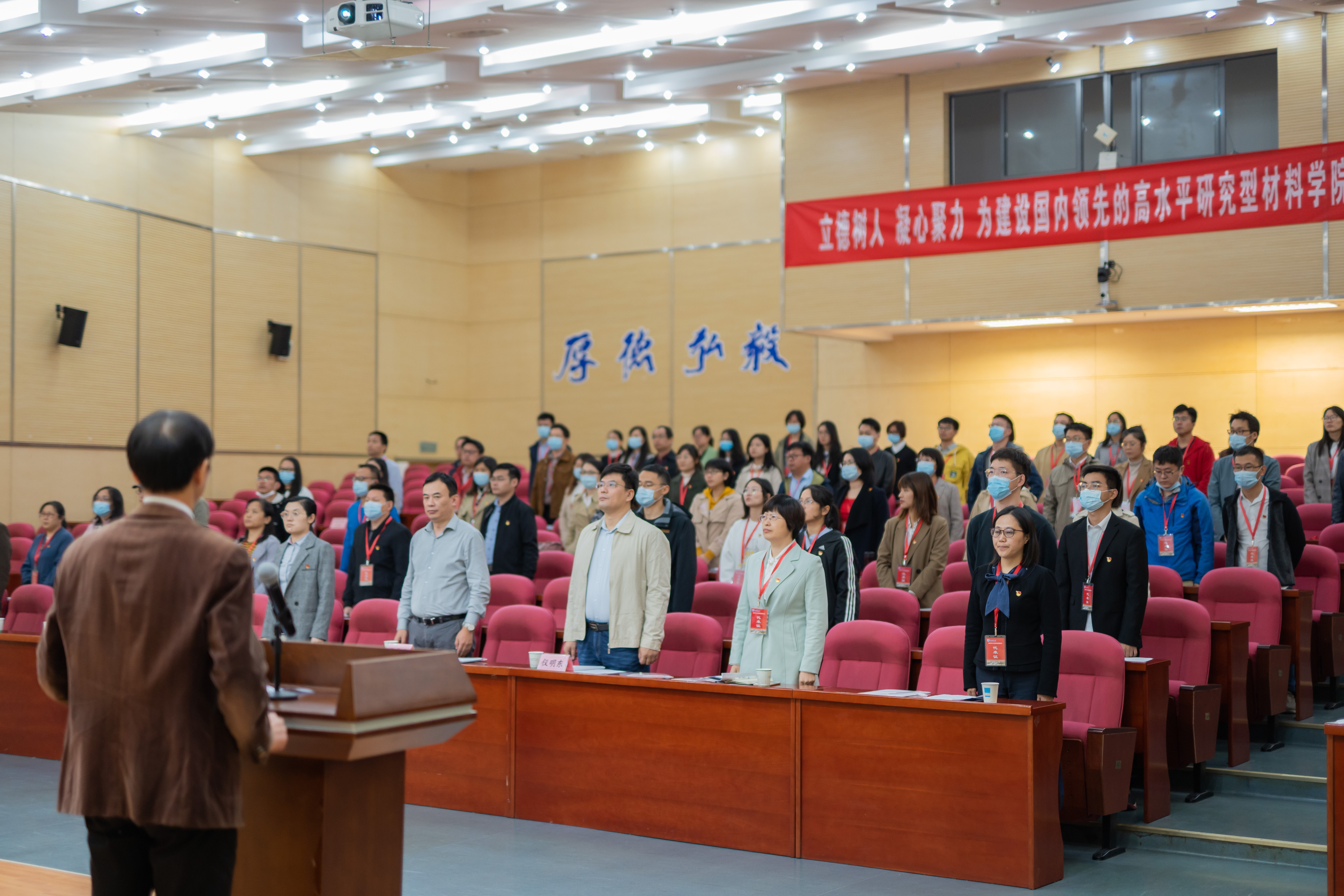 大会在庄严的国歌声中拉开帷幕。本次大会的指导思想是:高举中国特色社会主义伟大旗帜,以习近平新时代中国特色社会主义思想为指导,实事求是地总结学院党委近三年以来的工作,确立今后一段时期的奋斗目标和战略思想,提出今后三年事业发展的主要指标和重点任务,选举产生中国共产党麻豆视频 麻豆视频 新一届委员会,进一步动员和凝聚全院广大党员的智慧和力量,团结带领全院师生员工,坚持党对学校事业的全面领导,坚持社会主义办学方向,紧紧围绕立德树人根本任务,为建设国内领先的高水平研究型材料学院,为学校一流学科建设水平进入世界前列而努力奋斗。