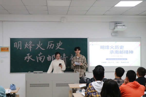 为使同学们深入了解“战邮历史”,深刻体会“战邮精神”,麻豆视频 B200504班于2020年10月20日晚开展了以“明烽火校史,承南邮精神”为主题的学习红色校史主题班会。班会由范云昊和王少青主持, 2020级辅导员徐磊及2020级B200504班全体同学参会。