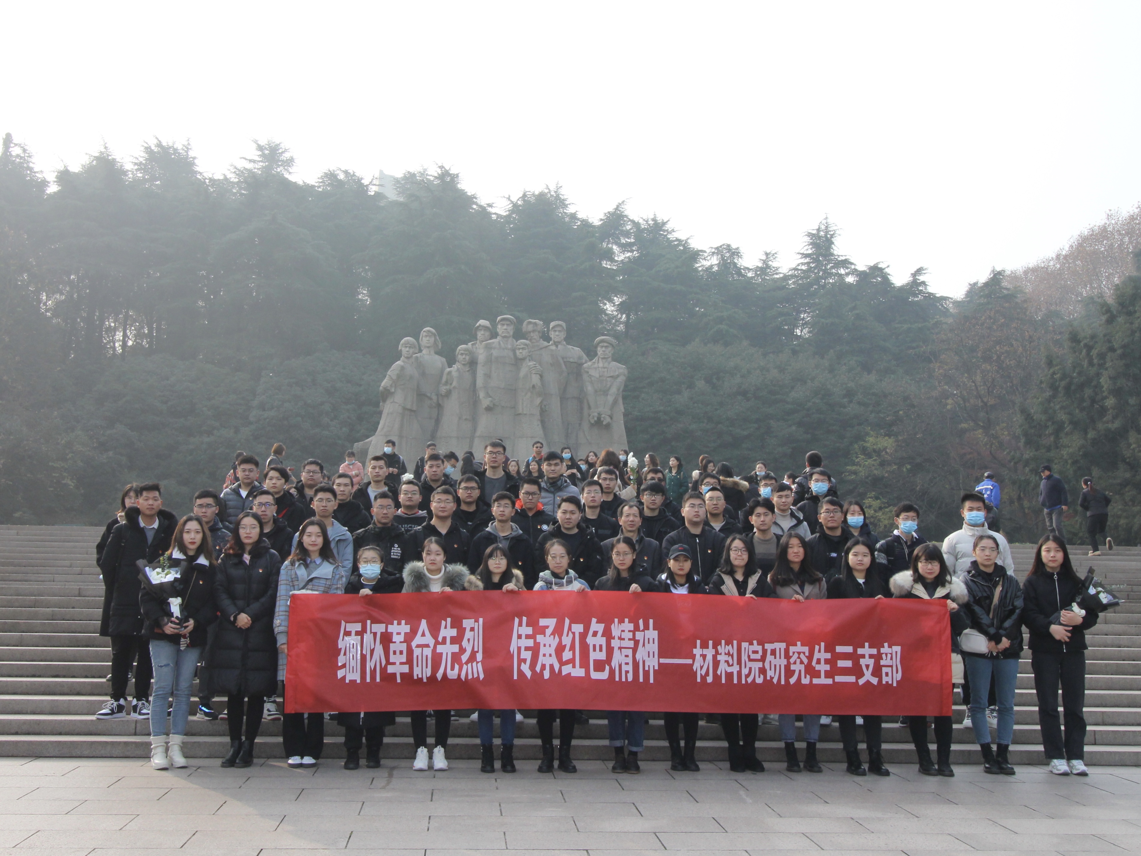 为缅怀革命先烈,传承红色精神,12月13日上午,麻豆视频 研究生三支部全体党员前往雨花台烈士陵园开展主题教育党日活动,学院党委副书记张建平、辅导员赵赫男参加了此次活动。