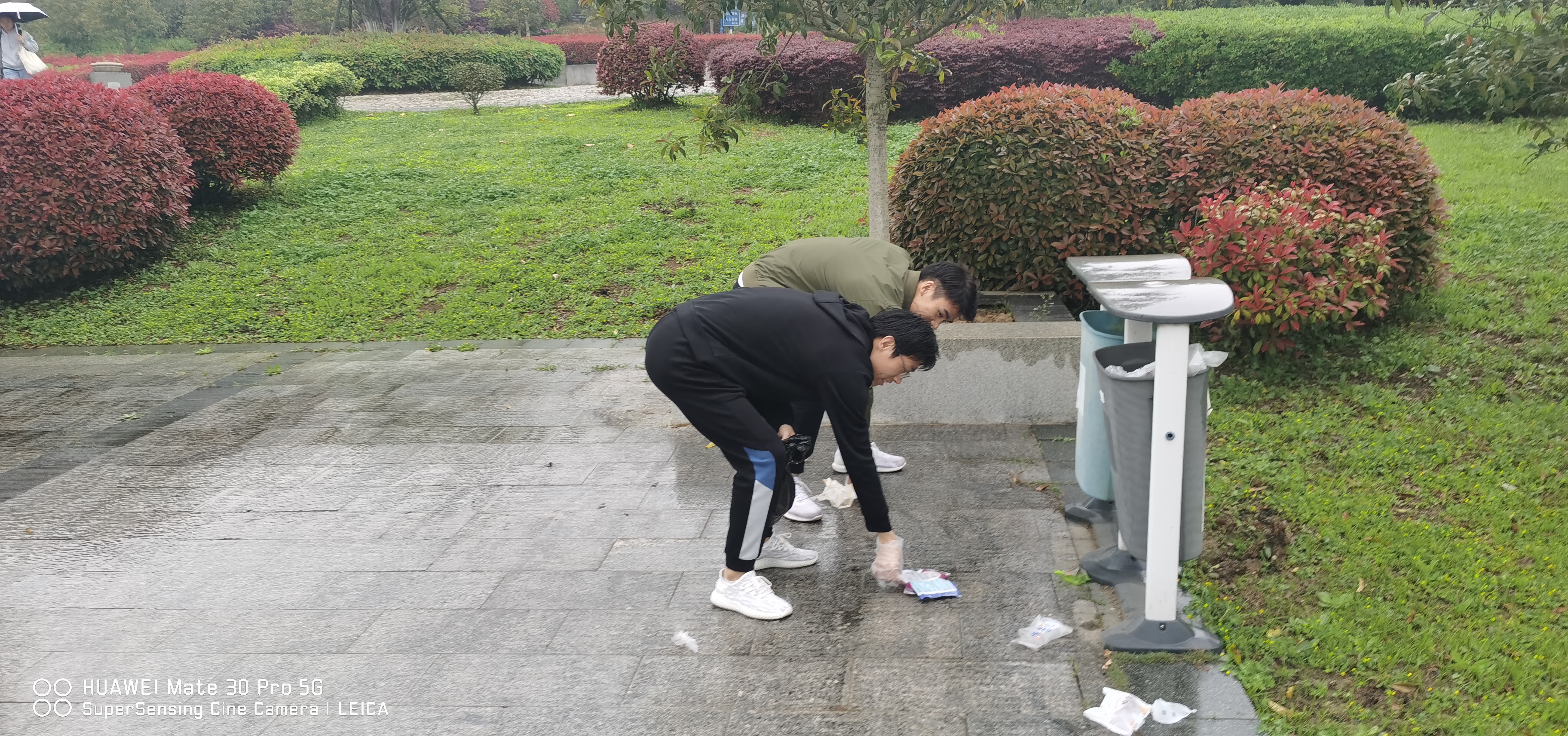 各小组分别来到了学校的鼎山、图书馆广场等校园公共区域等地进行了义务劳动。鼎山作为校园树林最茂盛的地方,是学校一处风景;积极分子们从各自宿舍、教研室带来打扫工具,沿着登山路清理每处垃圾,同学们认真仔细、不放过任何一个角落,将鼎山路上每个废弃饮料瓶和废纸片都清理干净。在图书馆门前广场,同学们进行了拉网式清扫,大家不怕吃苦,忙得不亦乐乎。经过大家共同努力,鼎山道路和图书馆广场整洁一新,积极分子同学用自己的汗水为79周年校庆跑创造了整洁干净的场地。