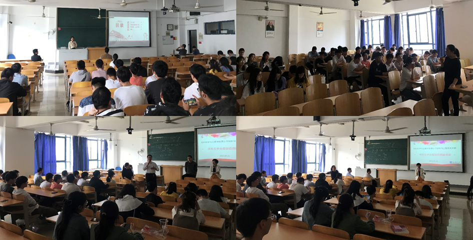 首先是学生学业规划指导。陈润锋老师从个人科研经历出发,向同学们解释了什么是科研,分享了如何做科研和科研对于国家发展的意义。陈老师鼓励同学们要弘扬科学家精神,培育和践行社会主义核心价值观,勇于投身科研事业、勇攀科学高峰,为推动我国建设成为世界科技强国做出贡献。赵保敏老师从人生规划和就业角度向同学们分享了经验,首先揭示了就业的本质,指出了方向选择和人生目标的重要性。赵老师表示作为有责任、有担当的年轻人,应该以奉献社会为己任,在创造自我价值的同时创造社会价值,在实现社会价值的同时实现自我价值。虞梦娜、尹超、李祥春等各位青年老师也分享了他们的个人成长经历,并向各位同学科普了有机光电材料、高分子材料和生物医学等方面的知识,激发同学们的科研兴趣,促进同学们对科学研究和技术研发的了解,增强大家对化学和材料科学的热爱。