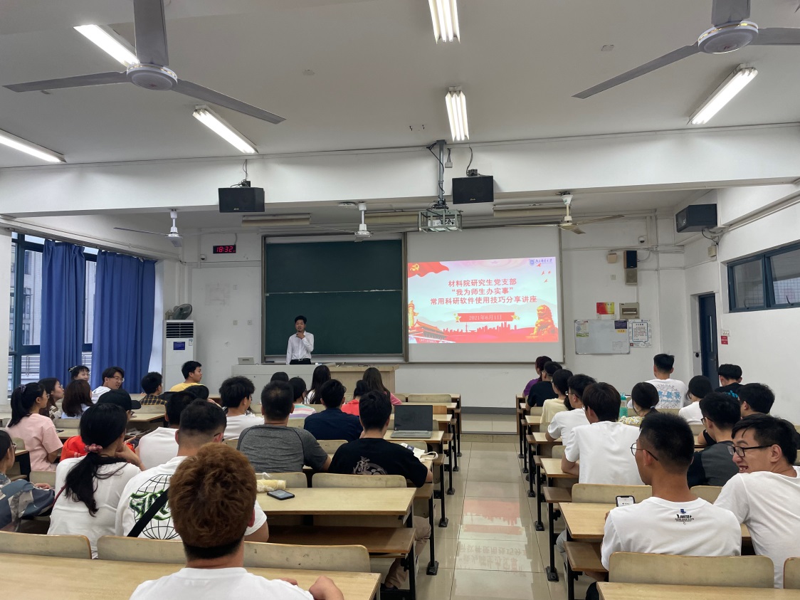 材料学院研究生支部、生物电子所支部以及博士支部,以科研为导向,把握学院特色,紧紧围绕大家反馈的与科研相关的问题,邀请钱洁、赵强和韦传新三位博士研究生进行了“软件助力科研梦”常用科研软件使用技巧分享的主题讲座,为学院广大研究生讲授他们在科研过程中运用的软件,分享使用心得和应用技巧。