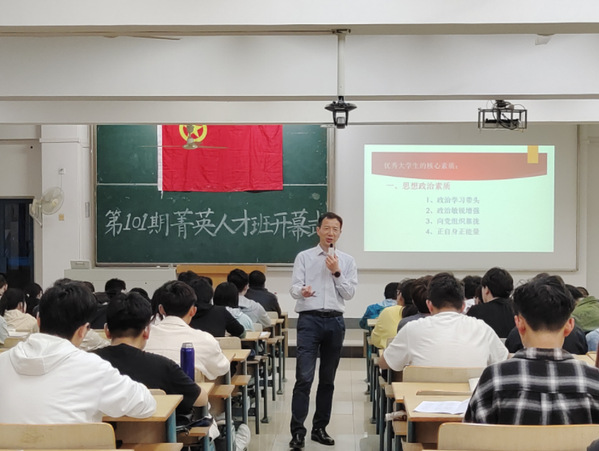 5月20日晚,麻豆视频 菁英人才学校第一课于仙林校区教4-300举行。本次课程由学院党委副书记张建平主讲,他首先对菁英人才培训班成功举办表示祝贺,随后围绕大学生如何提升素质,做到全面发展为内容开始授课。
