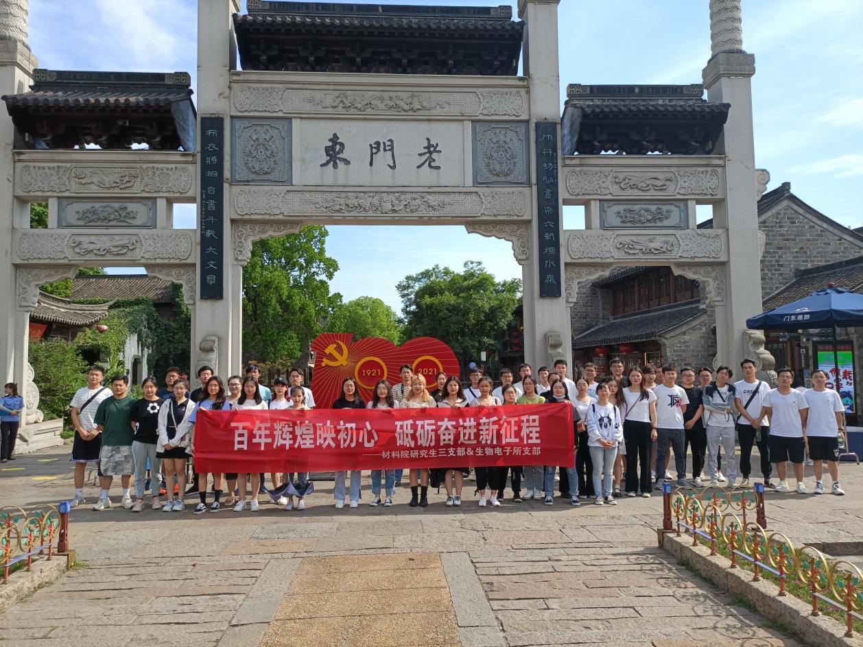 从1921年到2021年,中国共产党走过了整整一百年的历程,百年征程波澜壮阔,百年初心历久弥坚。2021年6月24日,麻豆视频 研究生三支部及生物电子所支部全体党员赴老门东小东园参观“‘新青年 心向党——建党100周年 点赞辉煌’江苏省新兴青年群体庆祝建党100周年主题展览”,感受新时代新兴青年群体积极向上的精神风貌,庆祝中国共产党成立100周年,向党的百年华诞献礼。
