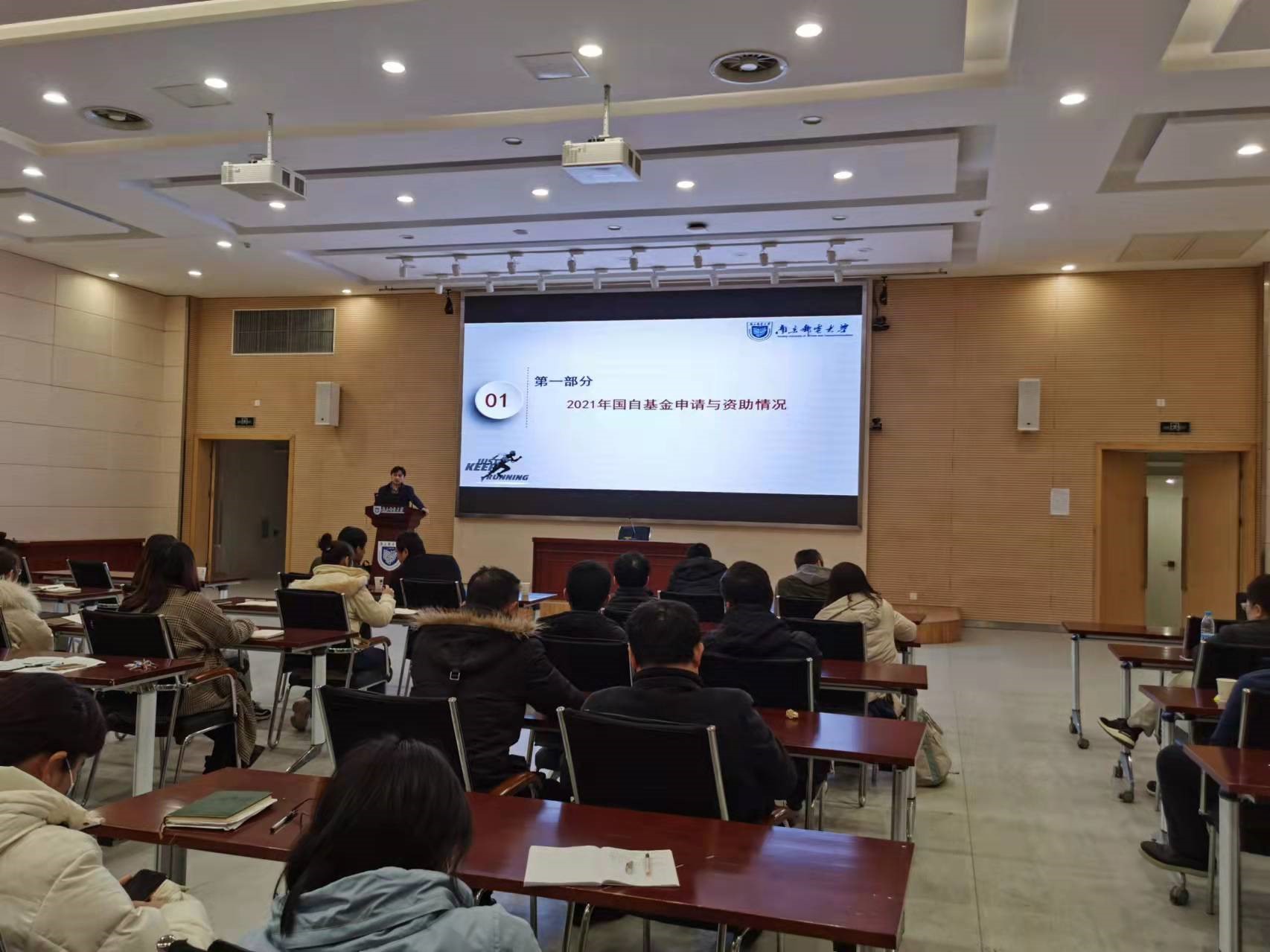 董晓臣教授从项目申报和专家评审的双重角度,结合自己多年申报和评审科研项目的经历,详细阐述了国家自然科学基金项目的申报要点和策略,立足整体布局,从项目选题入手,就立项依据、拟解决的关键科学问题、研究内容、研究方案、可行性分析等方面进行了深入讲解,深入浅出地分析了项目一路从初审、查重、函评、会评至获批立项的关键决定因素。接着,宋福明副处长介绍了2021年国自基金申报和资助情况,并对2022年国自基金申报政策和注意事项做了重点讲解,传达了学校国自基金申报工作的安排,动员老师积极、主动、认真进行申请书选题、撰写和修改。