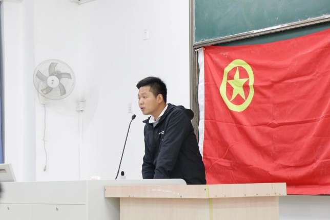 博士研究生方栋学长则主要以他的亲身经历为同学们介绍了他的学生工作经历以及志愿服务活动经历。作为一名优秀的共产党员,他在疫情最严峻的时候,坚守两省防线,为抗疫贡献出了自己的一份力量。他结合自身经历告诉菁英班的同学们要敢为人先,把握机会,才能有所成绩。