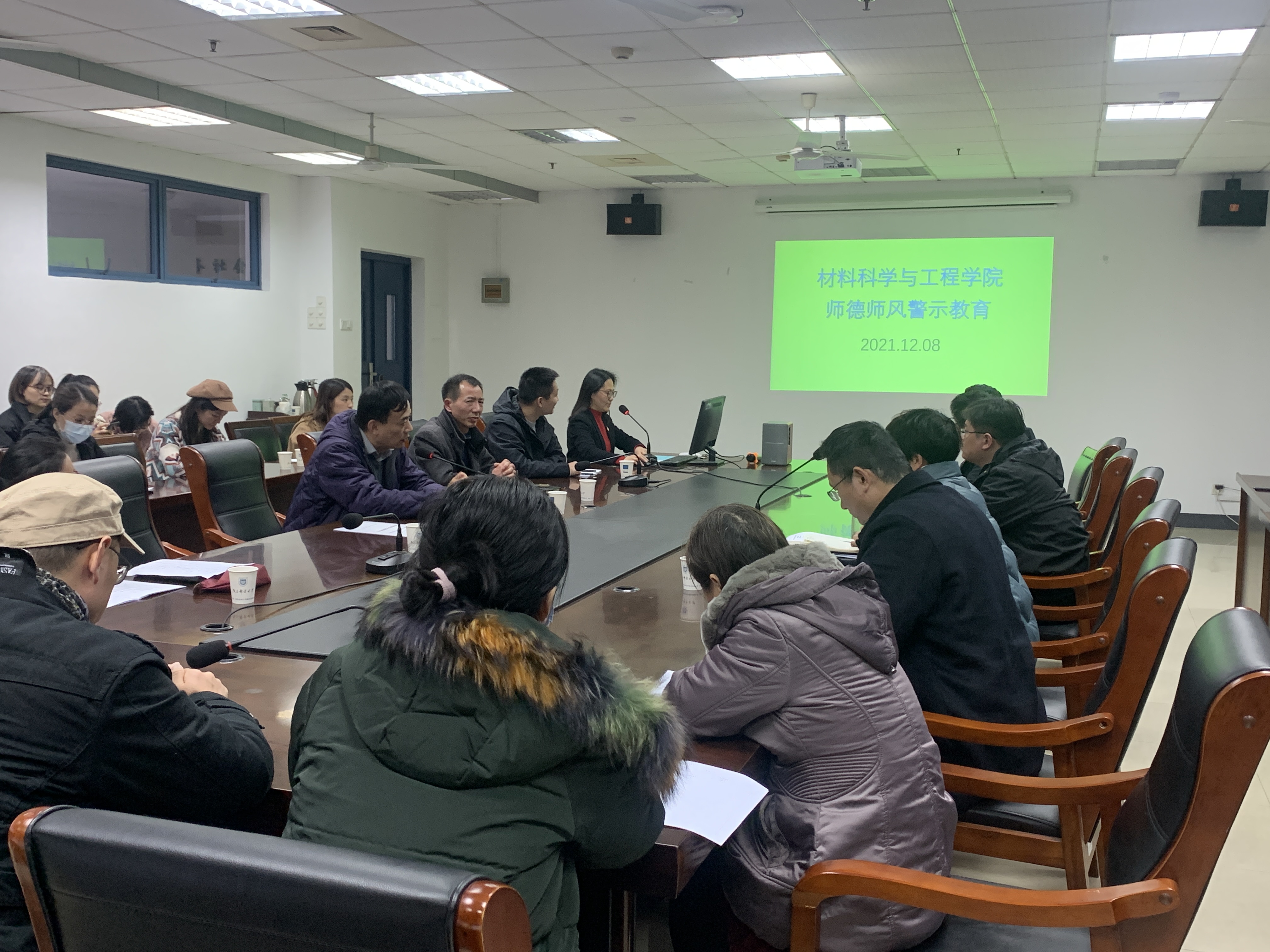 材料学院进行常态化师德师风警示学习,帮助老师们加强师德修养,坚守为党育人、为国育才的初心,不断涵养高尚师德,做党和人民满意的“四有”好老师。学院将师德师风作为评价教师队伍素质的第一标准,将师德表现作为教师职称评聘、评优奖励、聘期考核、项目申报等的首要要求,进行年度师德考核,强化教师思想政治素质考察,推动师德师风建设常态化、长效化。