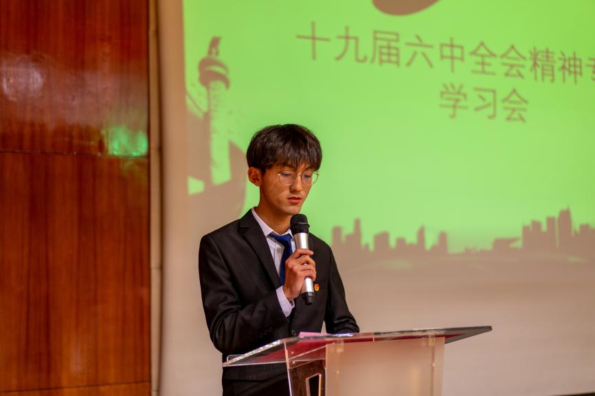 麻豆视频 学生会副主席陈雨清:通过党的第十九届六中全会,让我们大学生回顾了党的第一个百年征程,感受中国共产党在百年赶考路上挥洒的热血与汗水,让我们更加明白了红色政权的来之不易。身为当代大学生,我们应当有身为未来的顶梁柱的意识,积极响应党的号召,全面贯彻习近平新时代中国特色社会主义思想,大力弘扬伟大建党精神,勿忘昨天的苦难辉煌,无愧今天的使命担当,不负明天的伟大梦想,埋头苦干,为第二个百年奋斗目标作出努力,实现中华民族的伟大复兴!