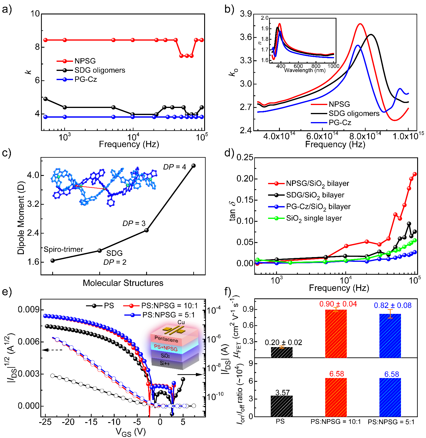 图3.聚螺格的介电特性和OFET应用