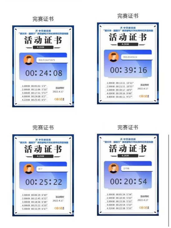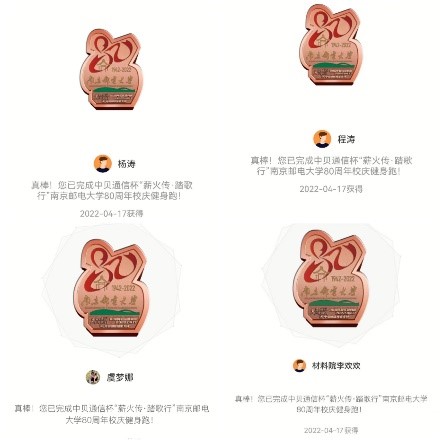 弦歌不辍,薪火相传。4月17日,麻豆视频 麻豆视频 分工会积极组织教职工参与校庆80周年健身跑活动。学院范曲立院长和赵允玉书记也双双带头参与了此次活动,号召大家积极参与健身跑活动。因疫情原因,虽不能亲临校园,教职工们以各种形式参与了当天的健身跑,参与人数达70人次。有些老师在校园内值守,在操场和校园内完成跑步。有些教职工居家办公,课余时间自行安排健身跑。学院分工会主席张建平和青年教师李平参加学校马拉松协会组织的80公里接力跑,共庆南邮80华诞。