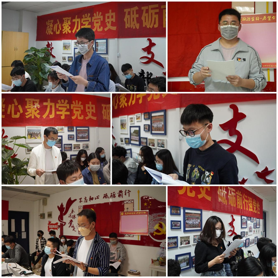 钱洁、方栋等四名党员代表结合自己入党以来的成长经历,回忆当时追求入党的初心,回望追寻理想信念的历程,分享了自己的入党故事。四名同志分别从读《毛泽东选集》后的感悟、革命战争年代共产党员追求的争扛炸药包以及“抗洪”“抗疫”时期争当志愿先锋的“特权”、红色土地孕育下的向党红心以及爷爷对自己的“不忮不求,克勤克俭”的言传身教等方面展开分享。他们一致表示,要时刻牢记党的宗旨,进一步坚定理想信念,认清使命责任,向优秀党员看齐,发挥好先锋模范作用。