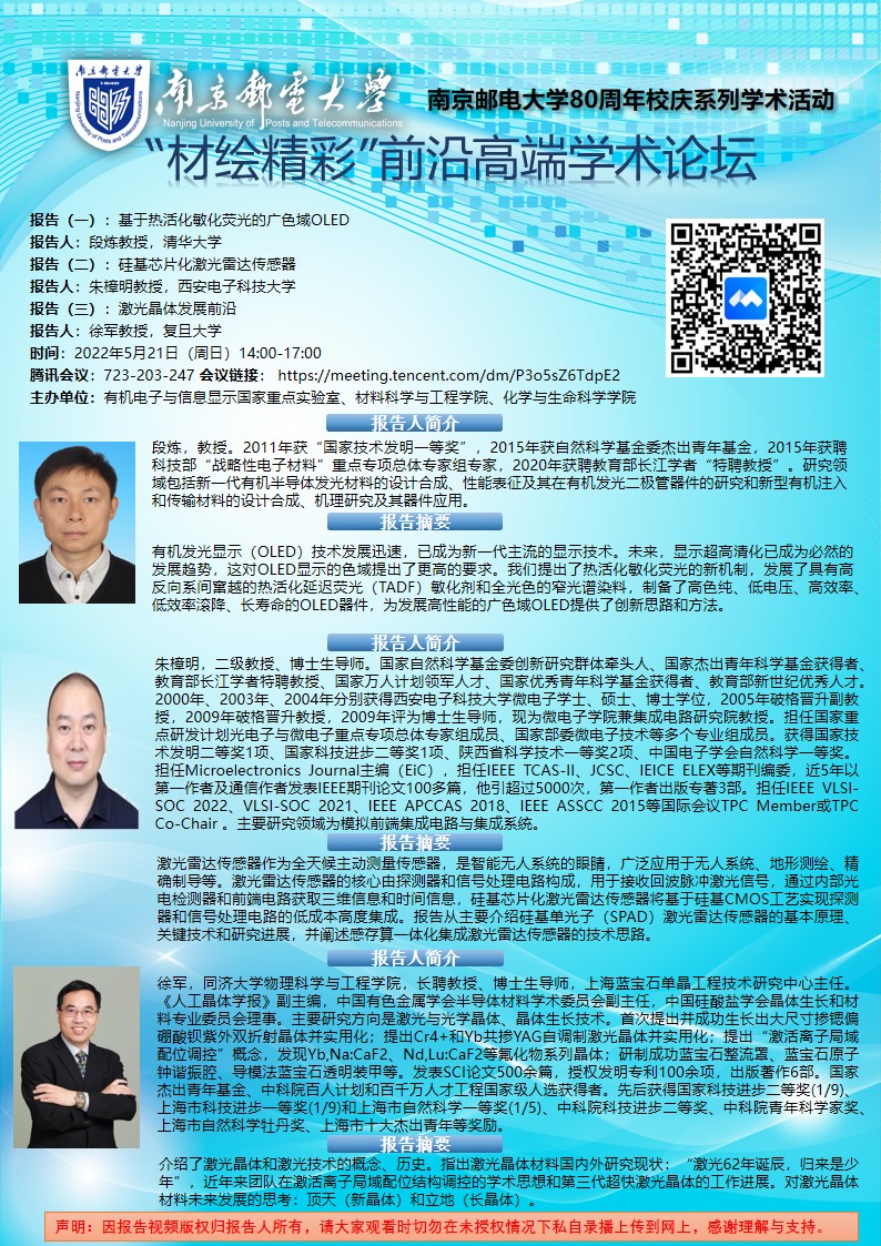 清华大学段炼教授&西安电子科技大学朱樟明教授&复旦大学徐军教授学术报告