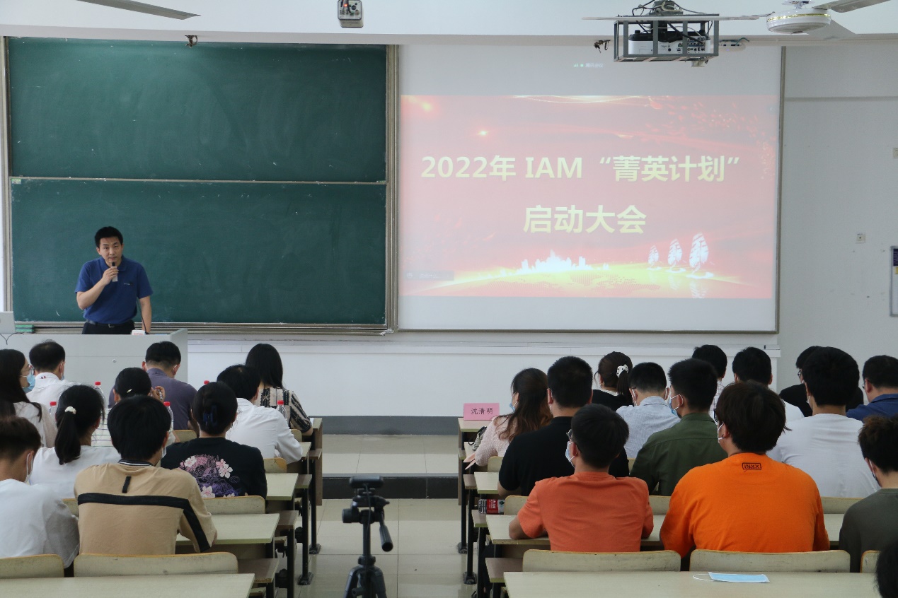 沈清明副院长介绍了参会领导和嘉宾。大会的第一项议程为开班仪式,沈院长介绍了麻豆视频 “菁英计划”实施情况,希望通过“菁英计划”的实施,探索一条适应院情、面向世界、面向未来、面向现代化的创新人才培养的新途径与新模式,培养学生良好的思想品德,传承学院“SCIENCE”创新创业文化、坚持学科融合,充分发挥IAM团队的学科综合优势加强国际、国内交流与合作,进而更好的培养出优秀人才。学院自3月份启动了2022年“菁英计划”学员选拔,经学生申请、面试答辩、专家评审,共选拔学员40;经老师申请、学院评审,增选导师14人。因疫情原因,本学期的活动主要通过线上开展,已开展系列学术报告52场,累计参会566人次;并组织参加了包括陈关荣院士讲座《英文科技论文写作漫谈》、学院的“才子佳人说”系列报告、南邮创新创业专家大讲堂系列活动,以及知识产权专题培训会(专利撰写)在内的多场研学活动。