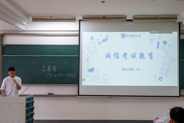 本次大会分为两个内容,一是对于即将到来的全国大学生英语四六级考试的考风考纪教育警示,王森老师着重强调了大学生英语四六级考试中应该注意的问题以及考场纪律问题,同时安排考试学生签订诚信考试承诺书;二是关于期末考试的诚信教育,王森老师讲解了国家、校纪校规关于诚信考试的相关规定,并指出“大学生要杜绝考试违纪,保证诚信考试。”最后,组织学生观看诚信应考宣传ppt,促使学生对诚信应试有了进一步的直观认识。