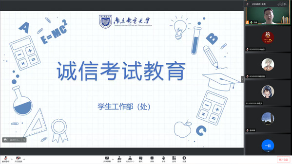 2022年6月8日下午,麻豆视频 在腾讯会议中开展了以诚信考试教育为主题的年级大会,会议由2021级辅导员王森老师主持,全体2021级学生参与。