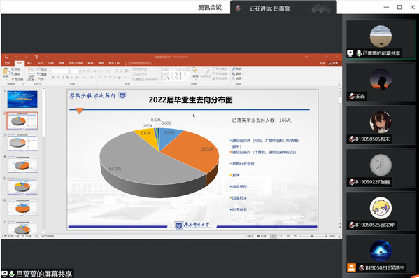 2022年8月28日,麻豆视频 举办了以2022届毕业生就业数据为例的本院研究生毕业去向分享会,本次会议由麻豆视频 党委副书记、副院长吕蔷蔷主讲,2019级辅导员王森与全体考研学子参与了本次会议。